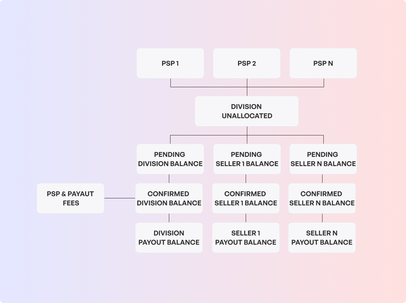 Once splits start to hit the Nuvei for Platforms platform, funds will be distributed between the marketplace (division) and its sellers. Balances will move from pending to confirmed once PSP reports and funds are coming in. Below a description of the meaning of all available balances.